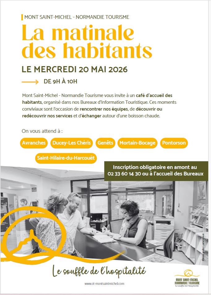 📍Dans tous nos Bureaux d’Information Touristique : Avranches, Ducey-Les Chéris, Genêts, Mortain-Bocage, Pontorson, Saint-Hilaire-du-Harcouët