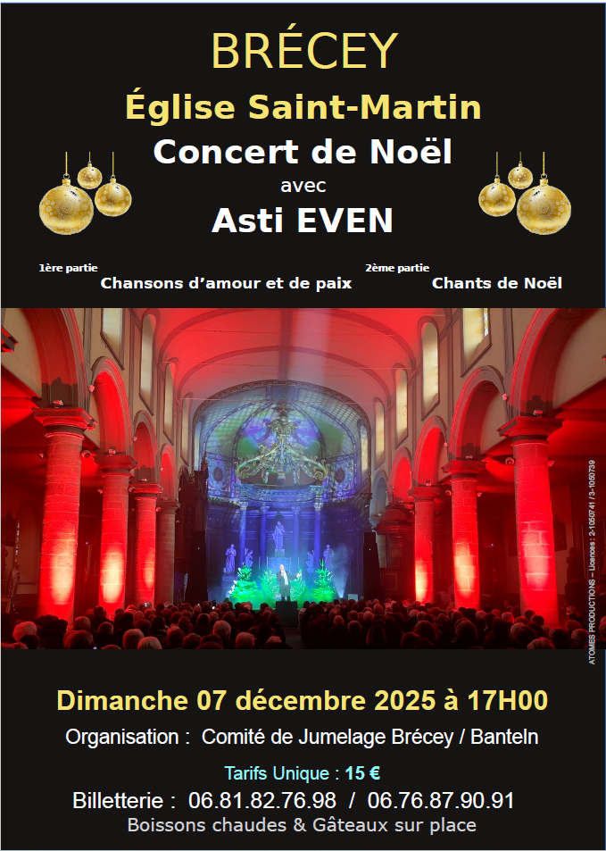 Brécey se prépare à vivre un moment d’exception avec la venue d’Asti EVEN pour un concert féerique le dimanche 7 décembre 2025 à 17h00, dans la magnifique église Saint-Martin. Organisé par l’association du Comité de Jumelage de Brécey, présidée par Jean-Louis Peslin, cet événement s’annonce comme l’un des temps forts de la période de l’Avent.