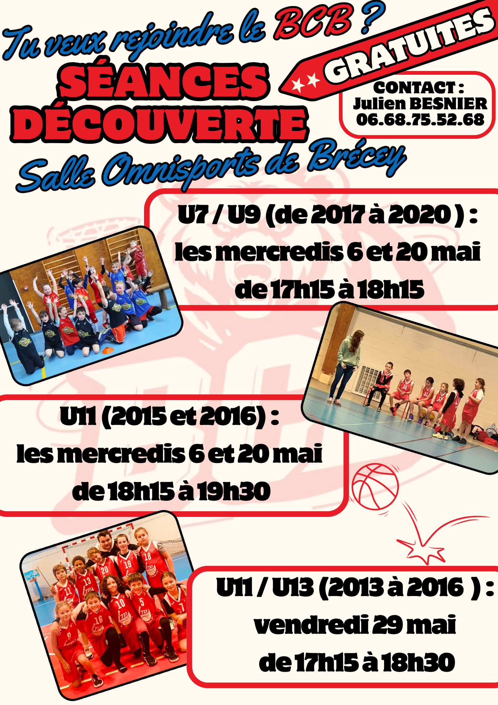 Des séances de découvertes gratuites sont proposées pendant le mois de mai et juin en fonction de l’âge des joueurs, vous trouverez toutes les informations sur les documents ci-dessous. Contactez Julien au 06.68.75.52.68.
